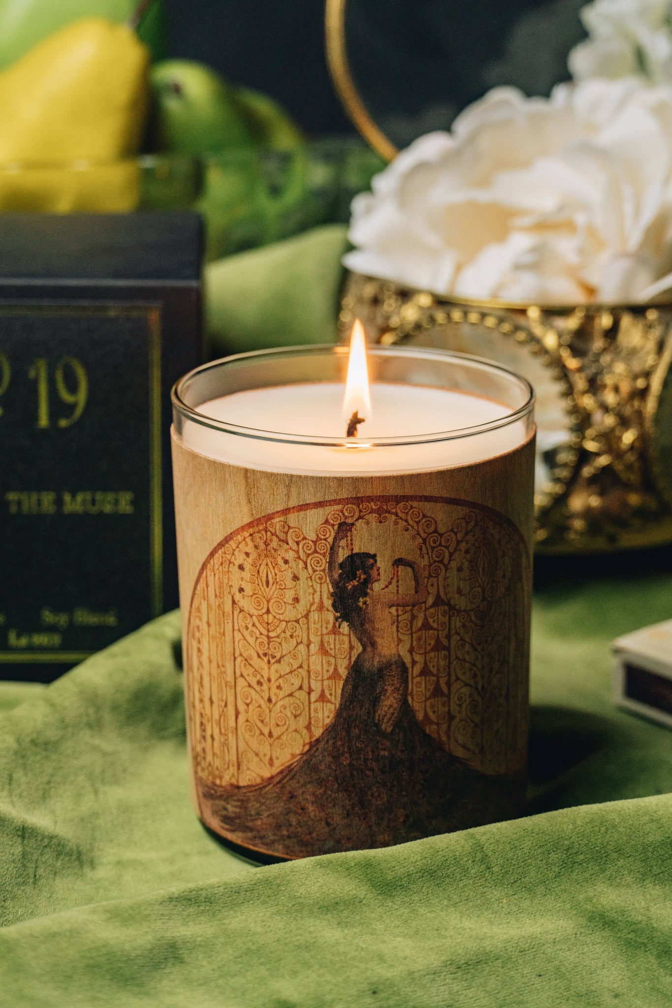 As each candle burns down it becomes a lantern illuminating the artwork printed on cherry wood. It is simply stunning and the only candle of its kind on the market. Notes: Saffron, Spice, Black Currant, Lavender, Rose, Vetiver, Cedarwood, Patchouli