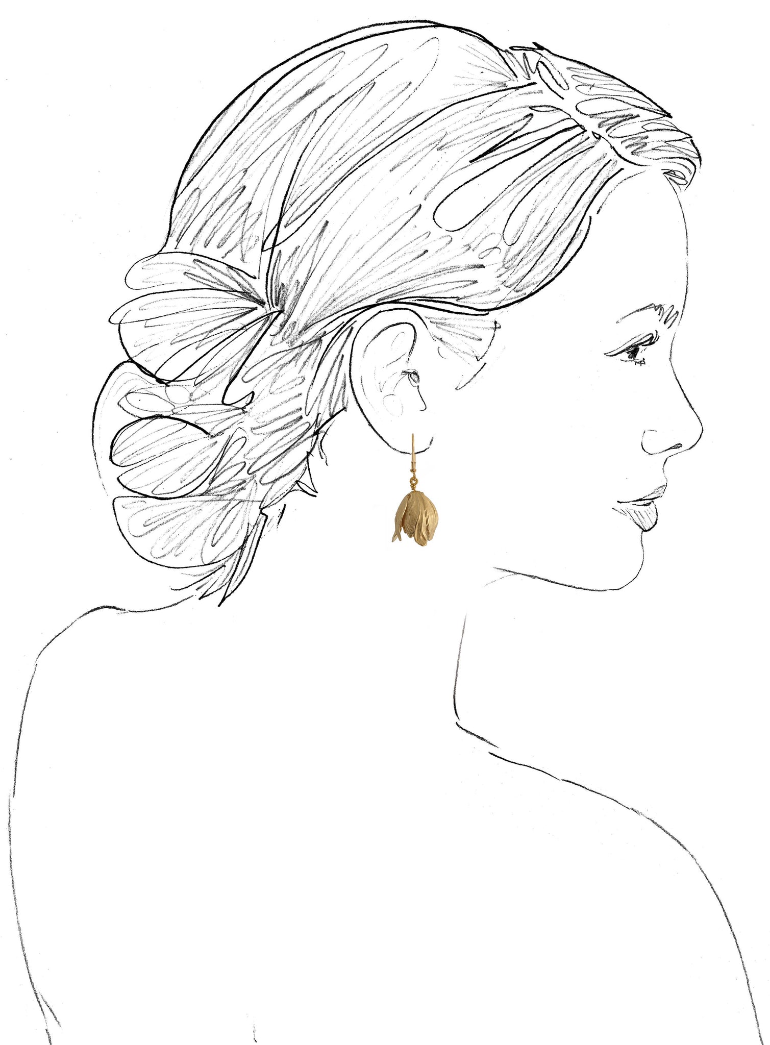 Brass with gold-plated brass lever backs. 1.75" (4.5 cm)
